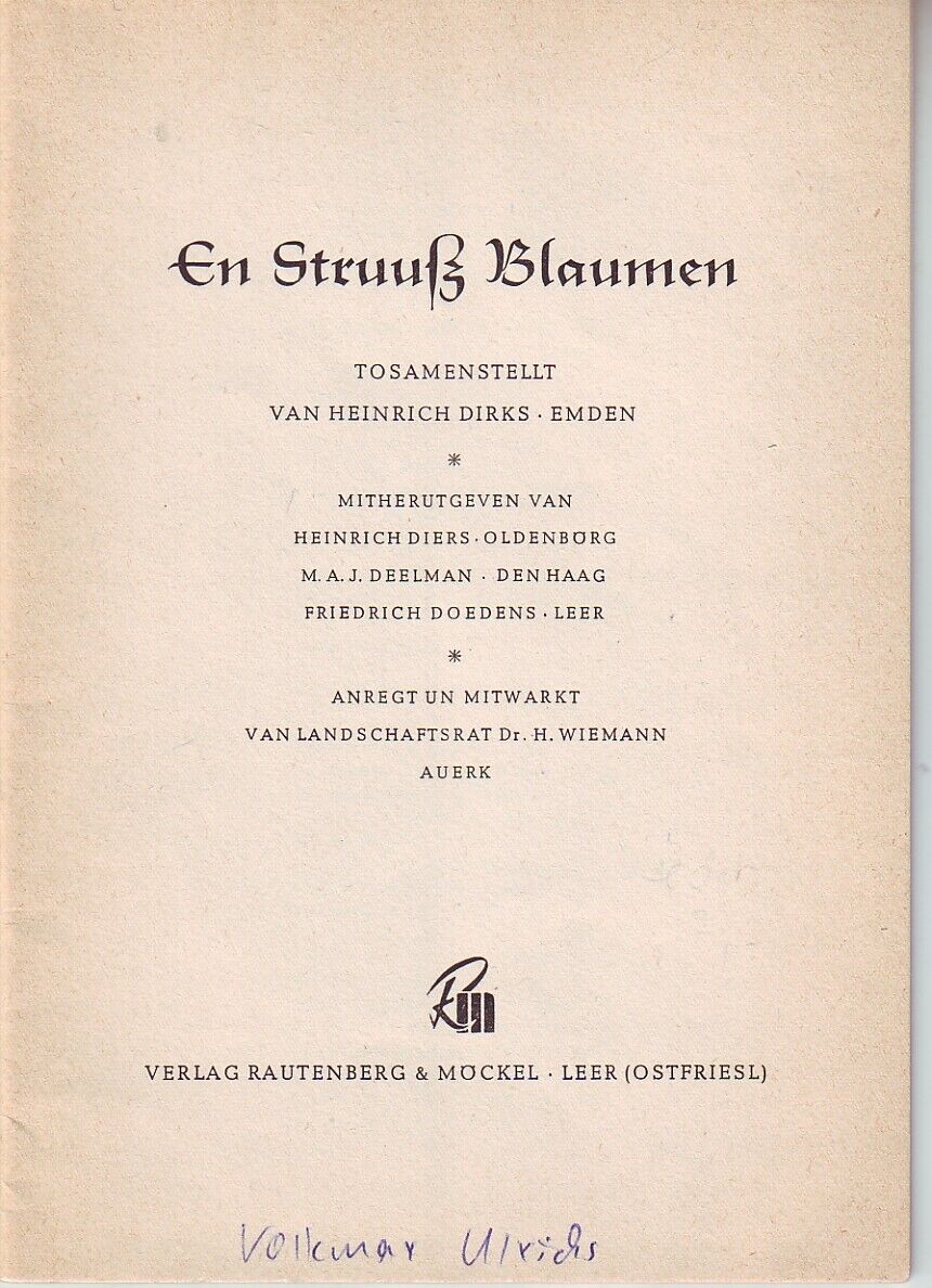 En Struuß Blaumen: Hrsg.: Heinrich Dirks. Mitherutgeven van Harm Wiemann …