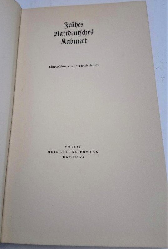 Frühes plattdeutsches Kabinett: Eingerichtet v. Friedrich Schult