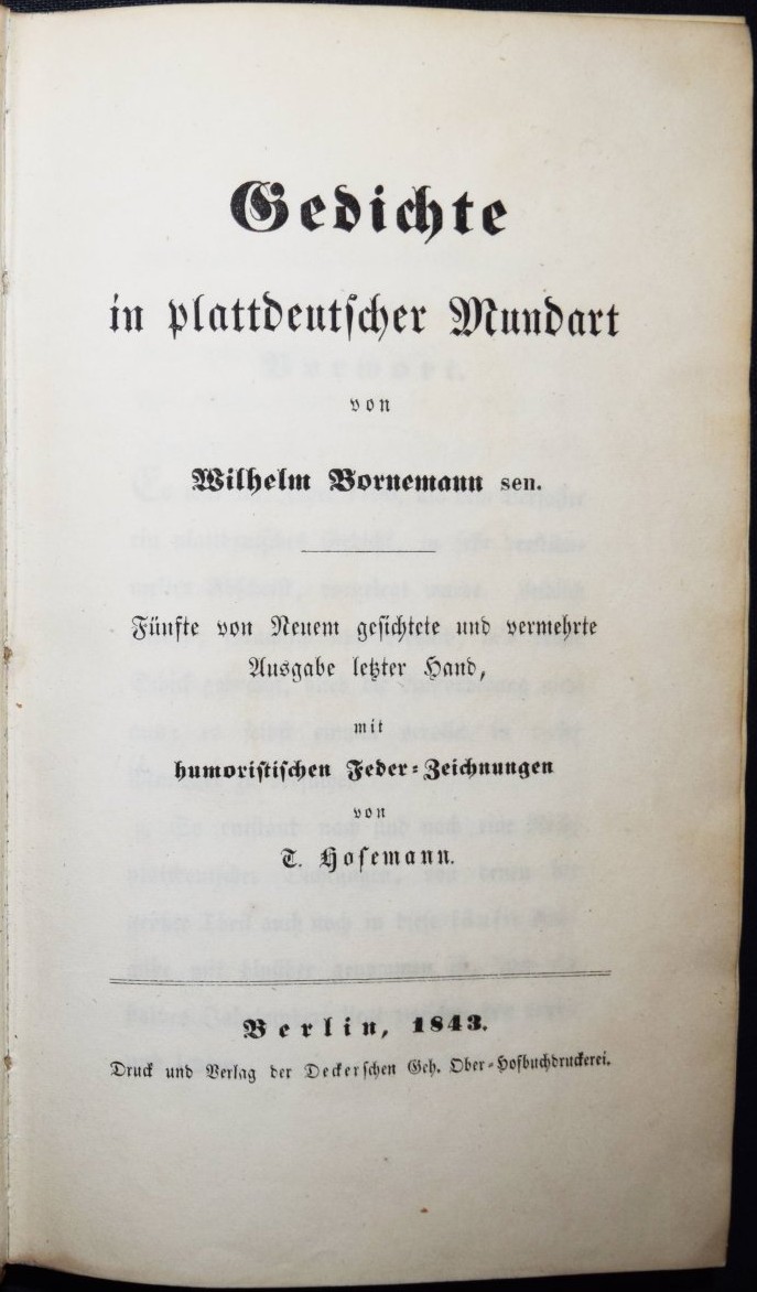 Gedichte in plattdeutscher Mundart: von Wilhelm Bornemann sen. … mit humoristischen Feder-Zeichnungen von T. Hosemann