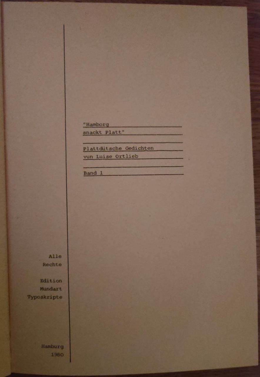 Hamborg snackt Platt. Band 1: Plattdütsche Gedichten vun Luise Ortlieb