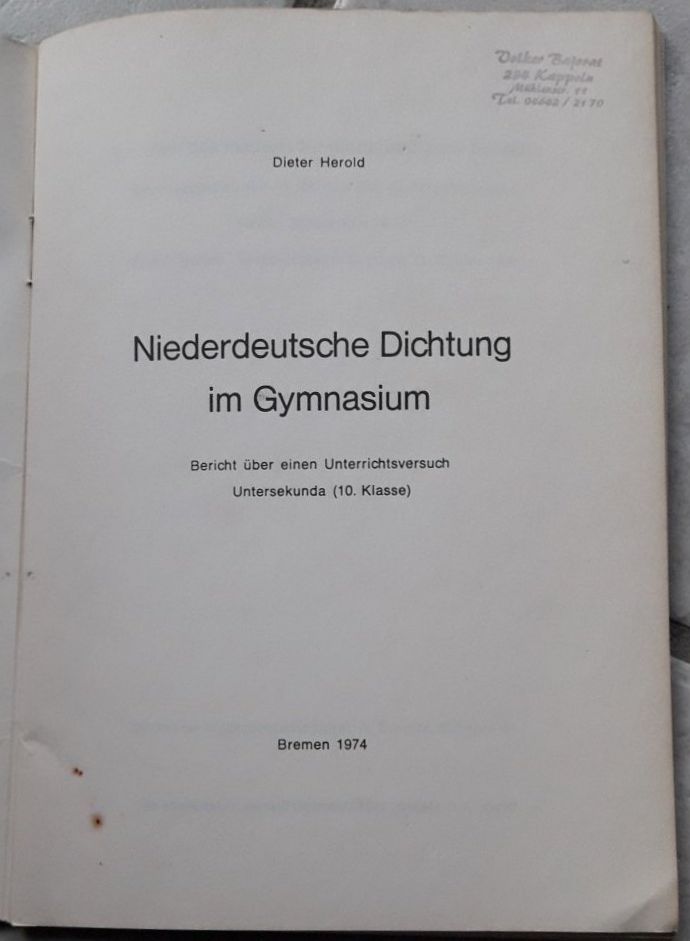 Niederdeutsche Dichtung im Gymnasium: Bericht über einen Unterrichtsversuch in Untersekunda (10. Klasse)