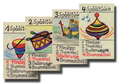 Platt-Quartett mit 40 Speelkoorten in en Etui