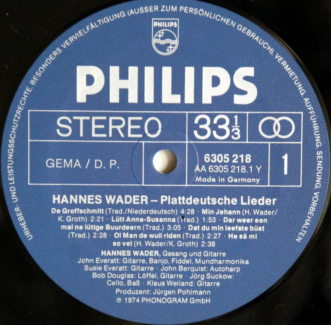 Plattdeutsche Lieder: Wader, Hannes; Everatt, John; Everatt, Susie; Bergquist, John; Douglas, Bob; Suckow, Jörg; Weiland, Klaus