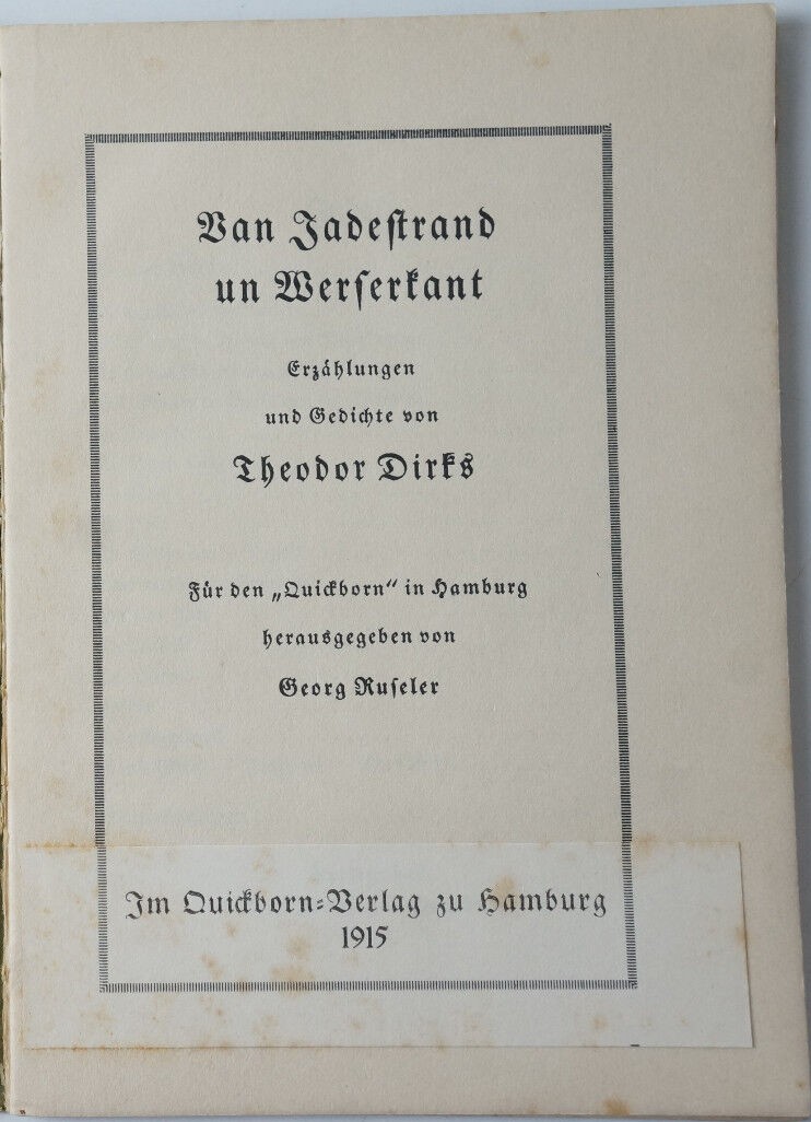 Van Jadestrand und Werserkant: Erzählungen und Gedichte: von Theodor Dirks, hrsg. von Georg Ruseler
