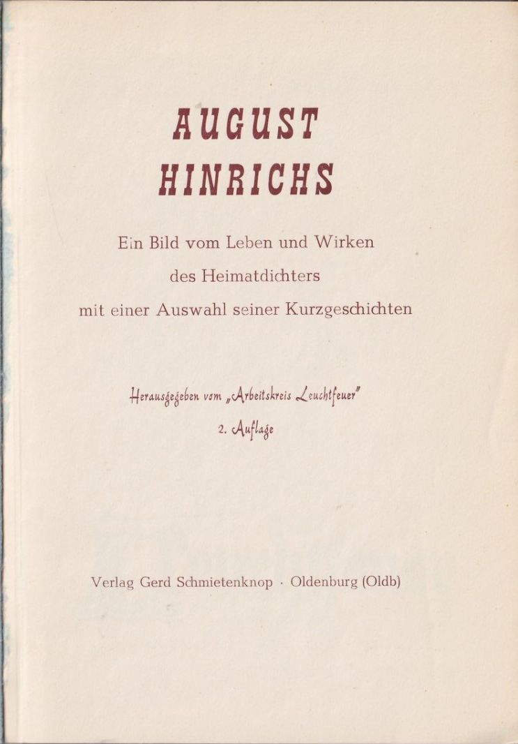 August Hinrichs: Ein Bild vom Leben und Wirken des Heimatdichters mit einer Auswahl seiner Kurzgeschichten: Herausgegeben vom „Arbeitskreis Leuchtfeuer“
