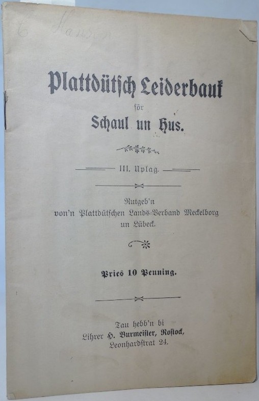 Plattdütsch Leiderbauk för Schaul un Hus: mit 11 niege Leider; Ruutgeb’n von’n Plattdütschen Lands-Verband Meckelborg un Lübeck