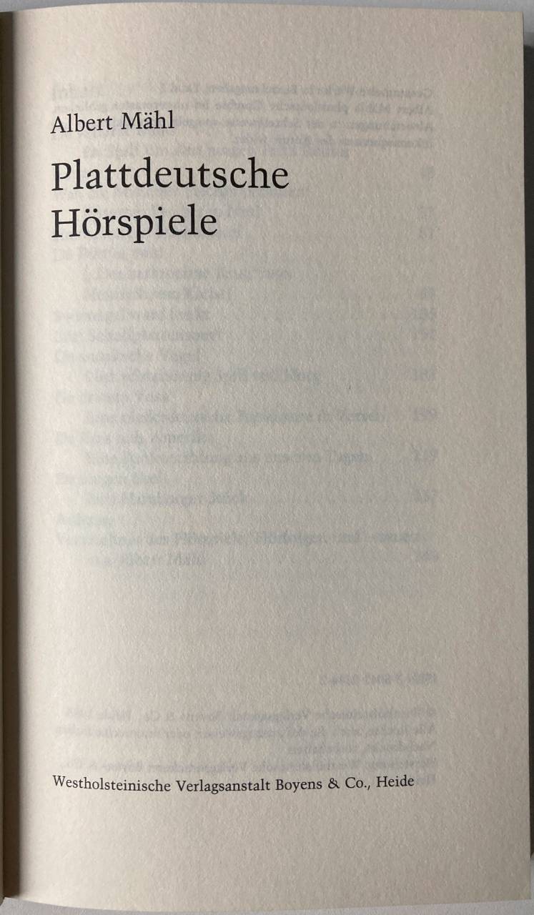 Unmittelbar nach dem 2. Weltkrieg begann Albert Mähl, einer der Väter des niederdeutschen Hörspiels, für den Nordwestdeutschen Rundfunk zu schreiben. In diesen Band wurden alle niederdeutschen Funkbeiträge aufgenommen, die eindeutig in ihrer dramaturgischen Form als Hörspiel zu erkennen sind.