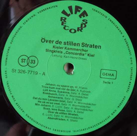 Över de stillen Straten: Kieler Chöre singen Niederdeutsche Lieder: Kieler Kammerchor, Singkreis „Concordia“, Sing- und Spielgruppe Kiel-Friedrichsort, Kinderchor Gymnasium Altenholz