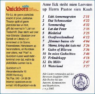 Anne Eck steiht mien Leevsten up Herrn Pastor sien Kauh: 13 neue plattdeutsche Lieder von der Bevensen Dagfahrt 2000