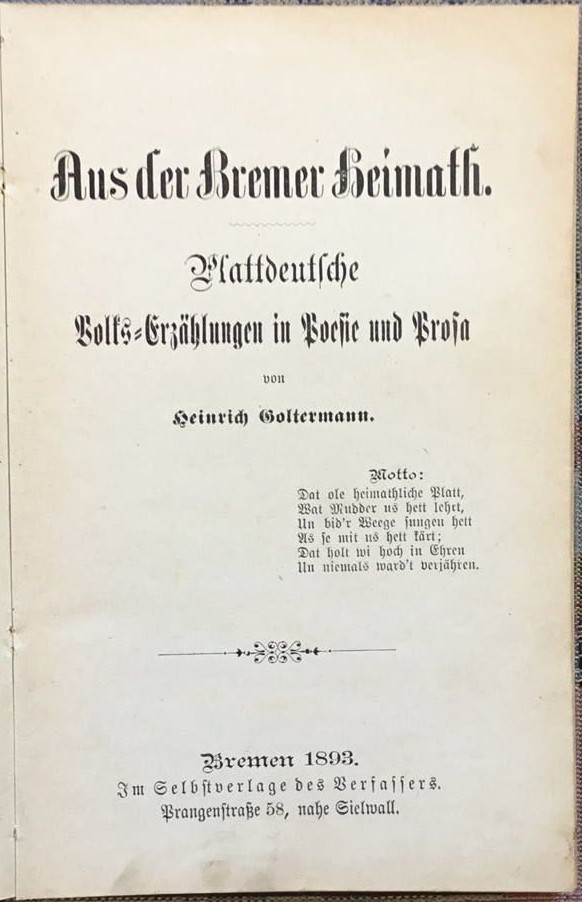 Aus der Bremer Heimath: Plattdeutsche Volkserzählungen in Poesie und Prosa