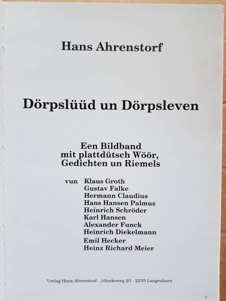 Dörpslüüd un Dörpsleven: Een Bildband mit plattdütsch Wöör, Gedichten un Riemels: hrsg. von Hans Ahrenstorf. Fotos: Hans Ahrenstorf