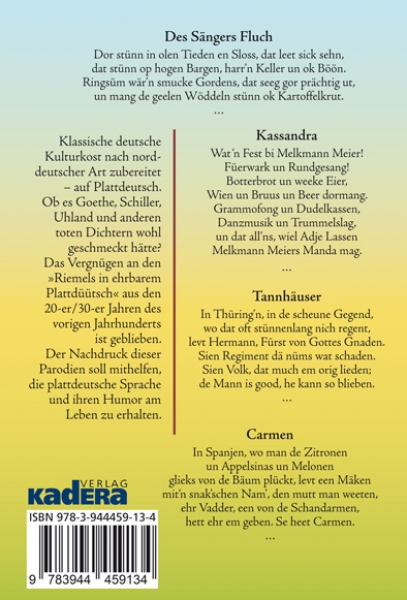 So reimt sich die plattdeutsche Parodie von Ludwig Uhlands "Des Sängers Fluch". Fünfzehn klassische Balladen und Gedichte hat Thesi Christiansen in den 20-er Jahren des vorigen Jahrhunderts für das humor-geneigte Publikum in "ehrbare plattdeutsche Riemels" umgesetzt. Es gehörte zu den beliebten Vortragsbüchern in Norddeutschland. Die Bemühungen, Plattdeutsch als norddeutsche Heimatsprache neu zu beleben, hat uns veranlasst, das einst in Fraktur gedruckte Büchlein unserer Zeit anzupassen und in kleiner Liebhaberauflage neu herauszugeben.