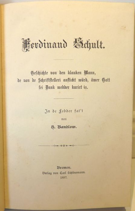 Ferdinand Schult: Geschichte von den klauken Mann, de von de Schriftstelleri anstickt würd, aber Gott sei Dank wedder kurirt is