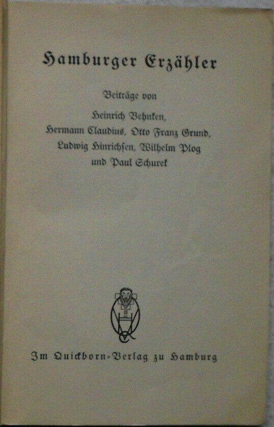 Hamburger Erzähler: Beiträge von Heinrich Behnken, Hermann Claudius, Otto Franz Grund, Ludwig Hinrichsen, Wilhelm Plog und Paul Schurek