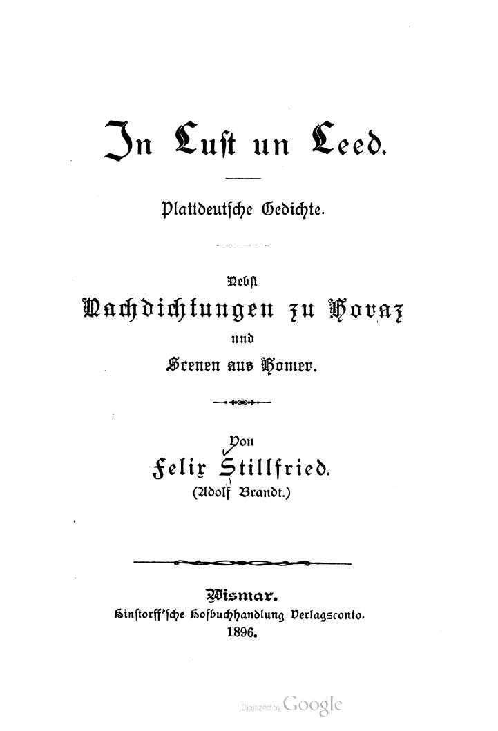 In Lust un Leed: Plattdeutsche Gedichte; nebst Nachdichtungen zu Horaz und Scenen aus Homer: Felix Stillfried