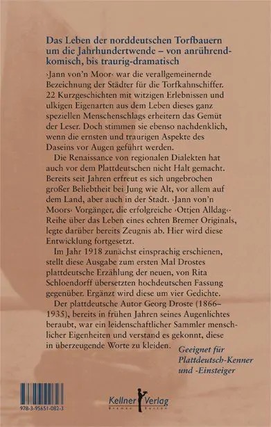 Die Renaissance von regionalen Dialekten hat auch vor dem Plattdeutschen nicht Halt gemacht. Bereits seit Jahren erfreut es sich großer Beliebtheit bei Jung wie Alt. »Jann von’n Moors« Vorgänger, die erfolgreiche »Ottjen Alldag«-Reihe über das Leben eines echten Bremer Originals, legte darüber bereits Zeugnis ab. Hier wird diese Entwicklung fortgesetzt. Im Jahr 1918 zunächst einsprachig erschienen, stellt diese Ausgabe zum ersten Mal Drostes plattdeutsche Erzählung der neuen hochdeutschen Fassung gegenüber. Ergänzt wird diese um vier Gedichte.