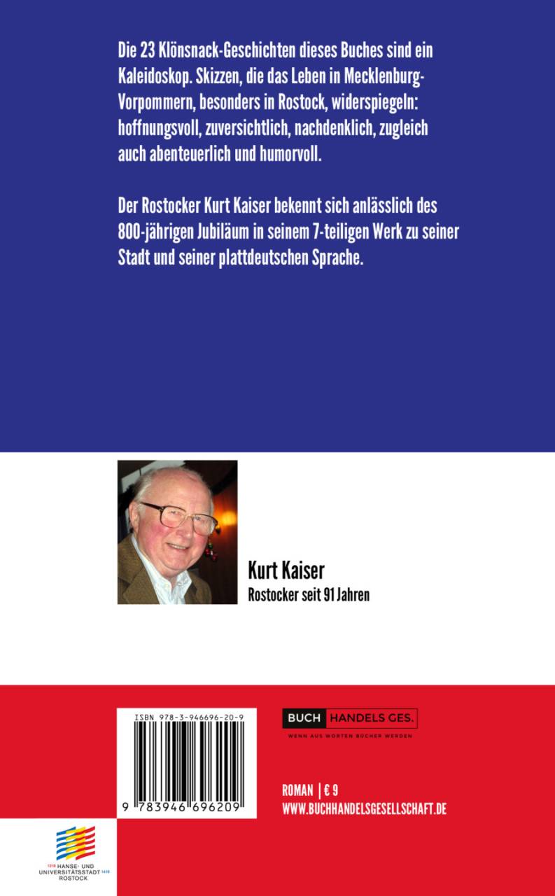 Die 23 Klönsnack-Geschichten dieses Buches sind ein Kaleidoskop. Skizzen, die das Leben in Mecklenburg- Vorpommern, besonders in Rostock, widerspiegeln: hoffnungsvoll, zuversichtlich, nachdenklich, zugleich auch abenteuerlich und humorvoll.