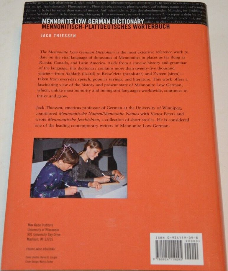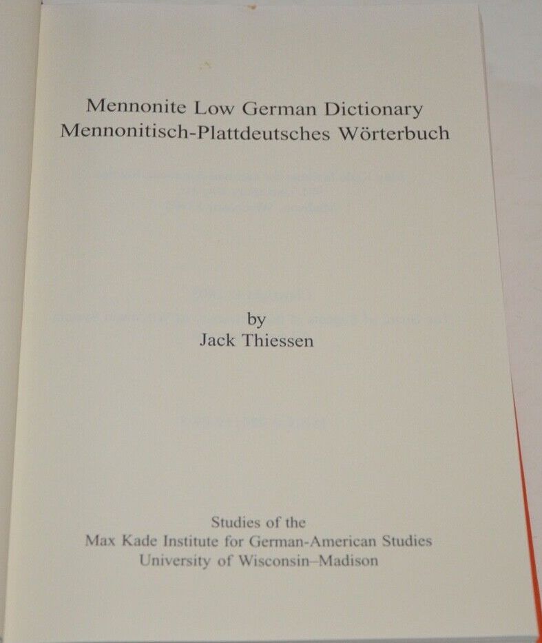 Mennonite Low German dictionary = Mennonitisch-plattdeutsches Wörterbuch: by Jack Thiessen. [Max-Kade-Institute for German-American Studies]