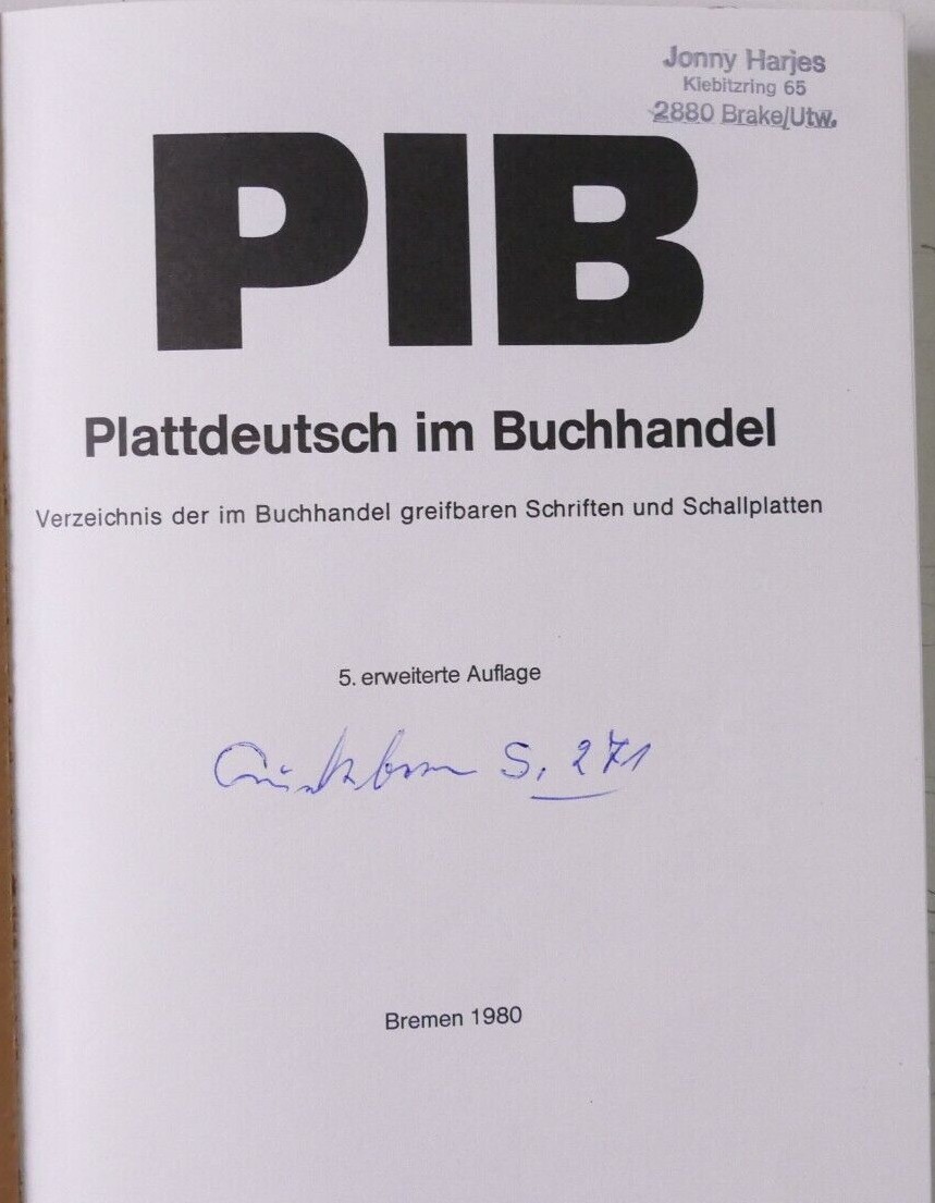 PIB, Plattdeutsch im Buchhandel: Verzeichnis der im Buchhandel greifbaren Schriften und Schallplatten