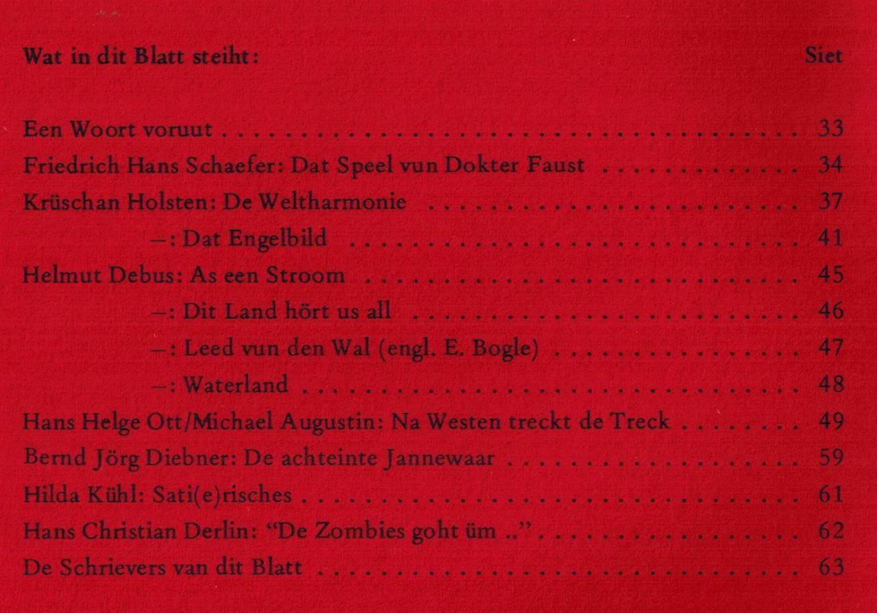 Sieden 33–64 (Siedentallen fangt bi 33 an un nehmt de Tallen ut Plattdütsch Land un Waterkant in’n Januaarmaand 1983 wedder op, de effektive Siedentall is also 32 Sieden)