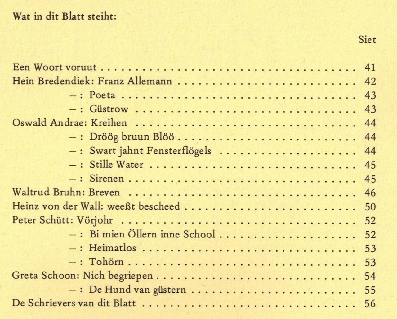 Sieden 41–56 (Siedentallen fangt bi 41 an un nehmt de Tallen ut Plattdütsch Land un Waterkant in’n Januaarmaand 1986 wedder op, de effektive Siedentall is also 16 Sieden)