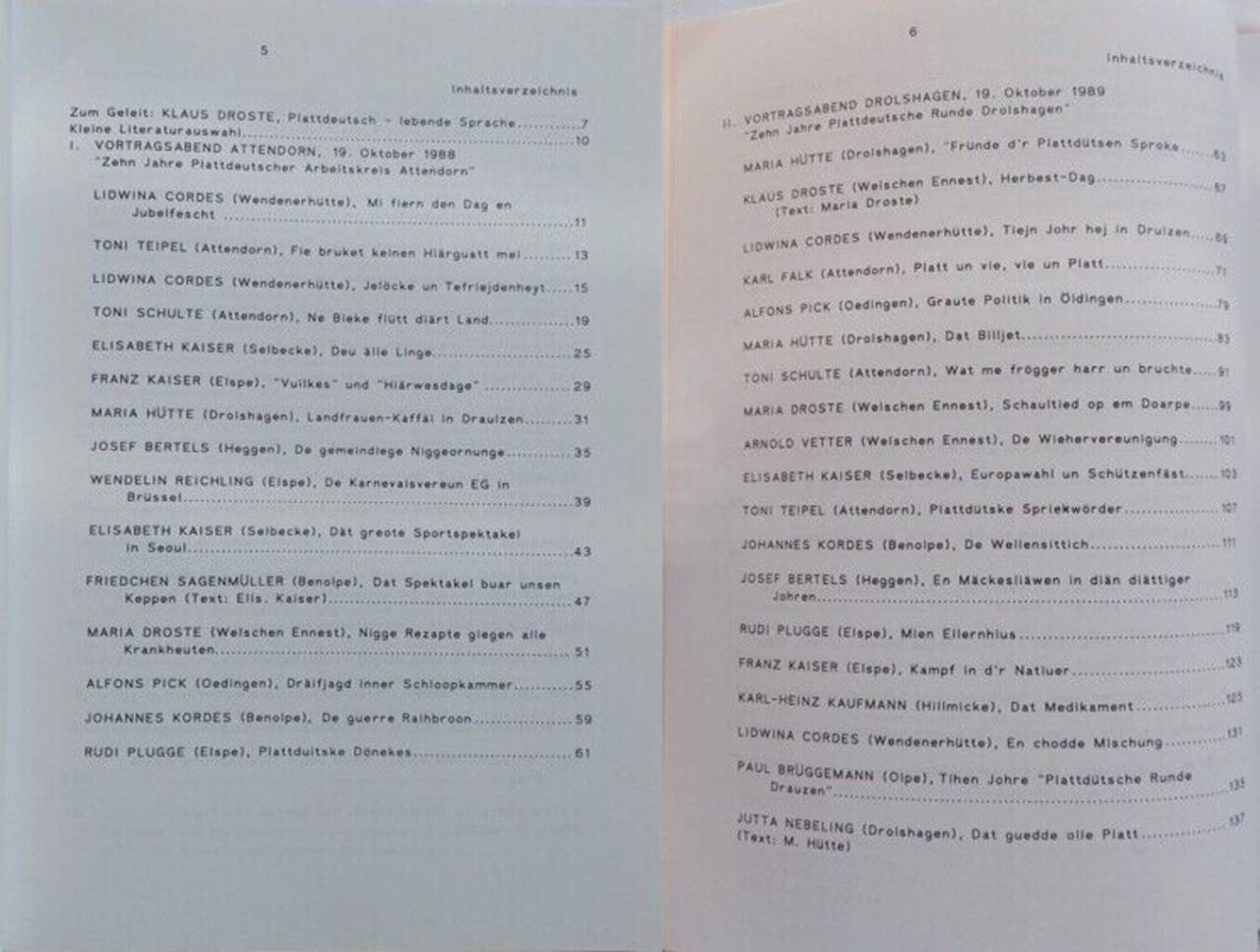 Plattdeutsch - lebende Sprache: Neue Mundarttexte aus dem Kreis Olpe im Südsauerland; [Textauswahl der plattdeutschen Literaturabende Attendorn, 19. Oktober 1988, Drolshagen, 19. Oktober 1989]: Hrsg.: Plattdeutscher Arbeitskreis der Volkshochschule des Kreises Olpe. [Verf. d. Textbeitr.: Bertels, Josef …]. Textred.: Klaus Droste …