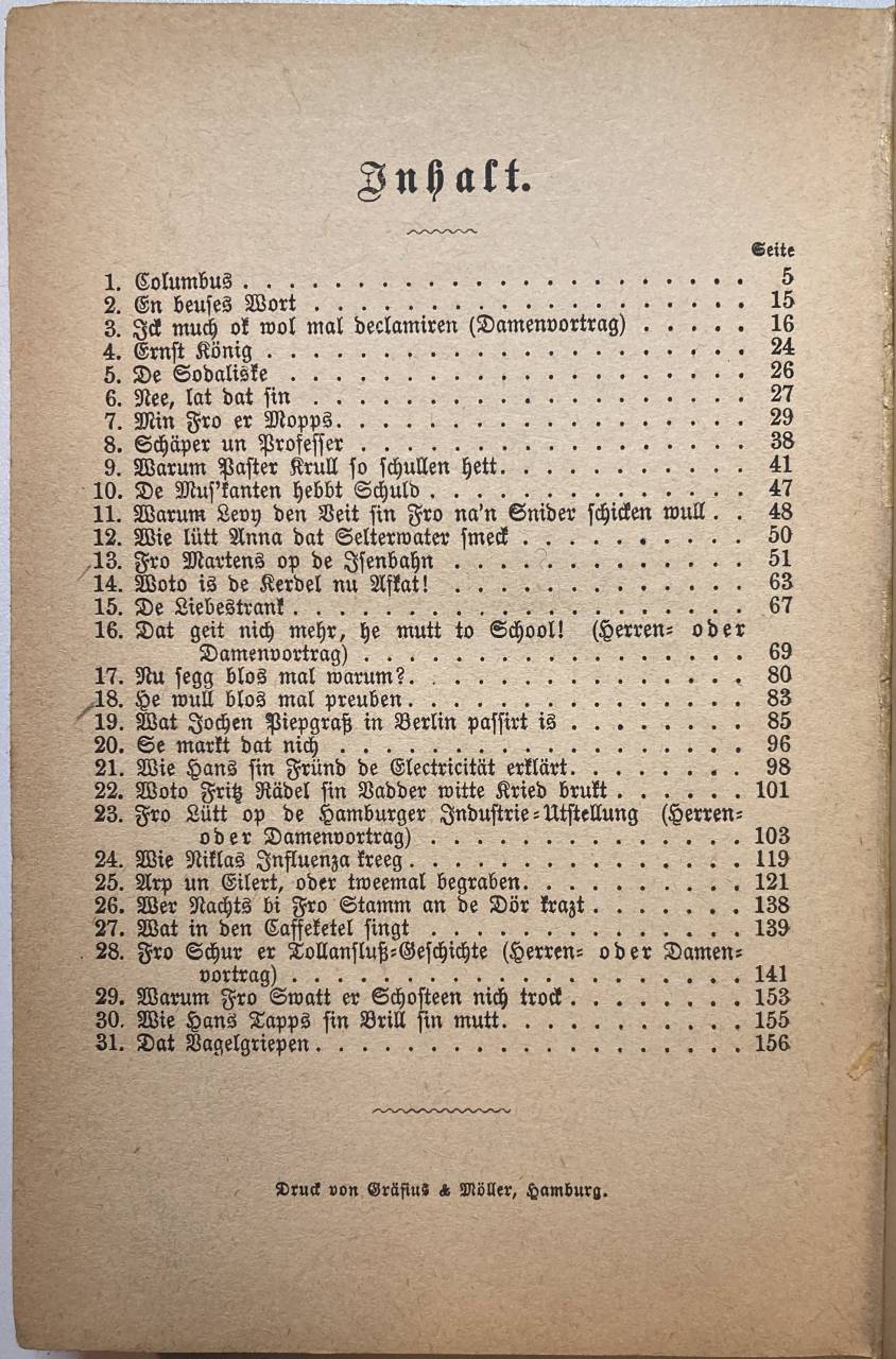 Spassige Rimels: Plattdeutsche humoristische Gedichte; 4 Theile (2. Oplaag, 1894)