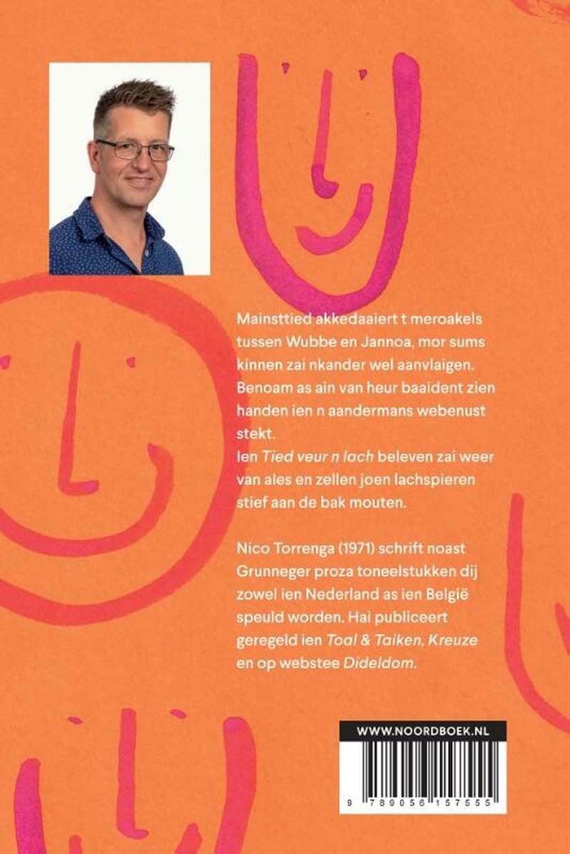 Mainsttied akkedaaiert t meroakels tussen Wubbe en Jannoa, mor sums kinnen zai nkander wel aanvlaigen. Benoam as ain van heur baaident zien handen ien n aandermans webenust stekt. Ien Tied veur n lach beleven zai weer van ales en zellen joen lachspieren stief aan de bak mouten. Nico Torrenga (1971) schrift noast Grunneger proza toneelstukken dij zowel ien Nederland as ien België speuld worden. Hai publiceert geregeld ien Toal & Taiken, Kreuze en op webstee Dideldom.