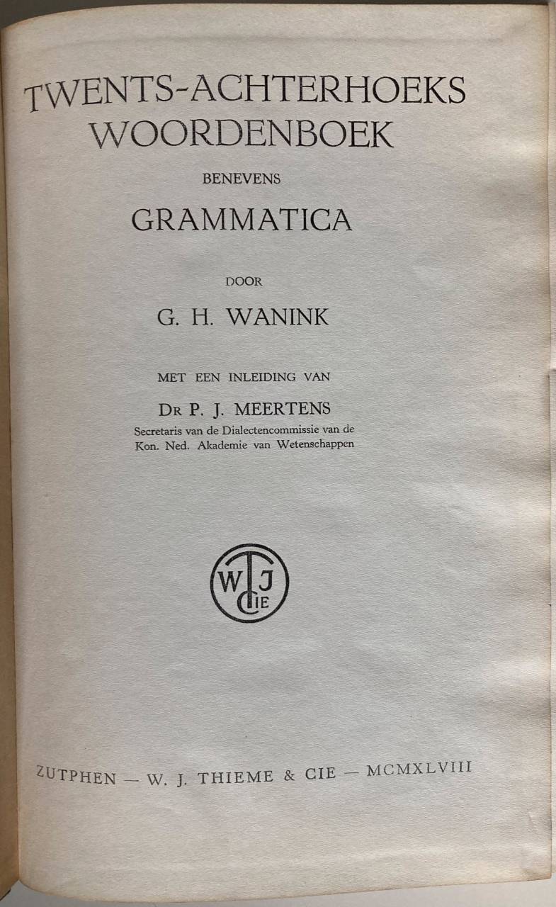 Twents-Achterhoeks woordenboek: benevens grammatica