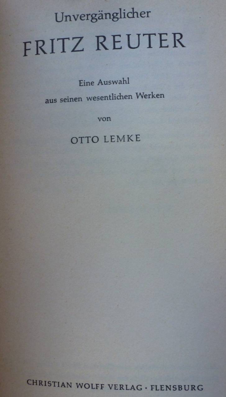 Unvergänglicher Fritz Reuter: Eine Auswahl aus seinen wesentlichen Werken: von Otto Lemke