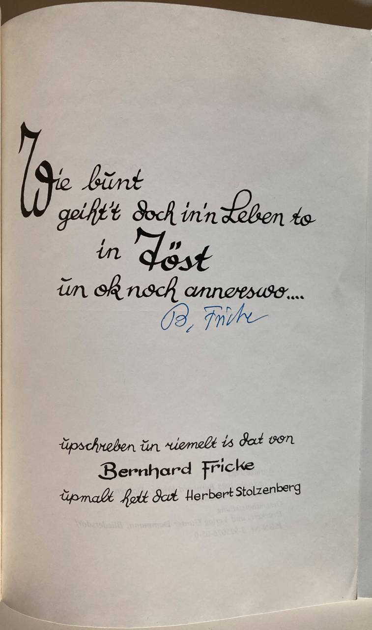 Wie bunt geiht’t doch in’n Leben to: In Töst un ok noch annerswo… Upschreben un riemelt is dat von Bernhard Fricke, upmalt hett dat Herbert Stolzenberg