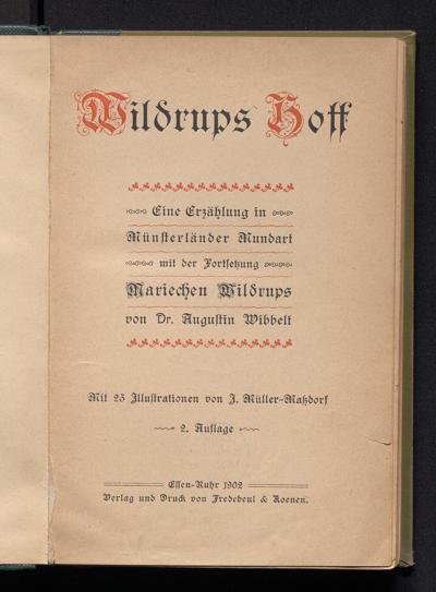 Wildrups Hoff: Eine Erzählung in Münsterländer Mundart mit der Forts.: Mariechen Wildrups: von Augustin Wibbelt. Mit 25 Ill. von J. Müller-Maßdorf