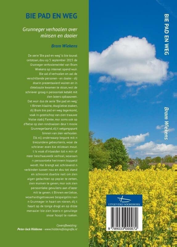 Bram Wiekens heeft met 'Bie pad en weg' zijn derde Groningstalige verhalenbundel geschreven. Het zijn kleine dagelijkse zaken, die Bram bij pad en weg tegenkomt, vaak in gezelschap van zijn trouwe Friese stabij Famke, maar soms ook op de fiets op zijn rondreizen door het mooie Groningerland, die het uitgangspunt van zijn verhalen zijn. Elk nieuw onderwerp begint met een bijzondere gebeurtenis, waar de schrijver even bij stil moet blijven staan. Het zijn eerlijke, waarheidsgetrouwe bespiegelingen van een Groninger in hart en nieren, die het hart op de tong draagt en op deze manier bij zijn lezers een gevoelige snaar hoopt te raken. Uit het verhaal 'Krinkiespijers': "... Op d'Molenstreek kin ik weer gang zetten, as ik aanderkaant sluus drij vraauwlu zitten zai op n bankje. Vrumd, denk ik, doar zitten aans ja aaltied n stok of wat olde kirreltjes op t leugenbankje, mor ik besteed doar verders gain aandacht aan. t Bodschopke in Veendam is n abceetje en mit n floep en n scheet bin ik weer boeten en as ik over t spoor hobbel, zai ik in mien rechterooghouke nog aaltied drij vraauwlu zitten. t Binnen dezulfde drij vraauwen. Ik temporiseer, mor duurf aiglieks ook nait recht te stoppen om d'boudel es goud te bekieken. Dat liekt zo gluurdereg. En ik vroag mie òf of t theekranske nog nait oflopen is…