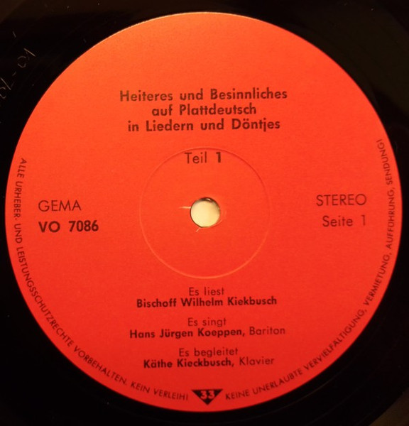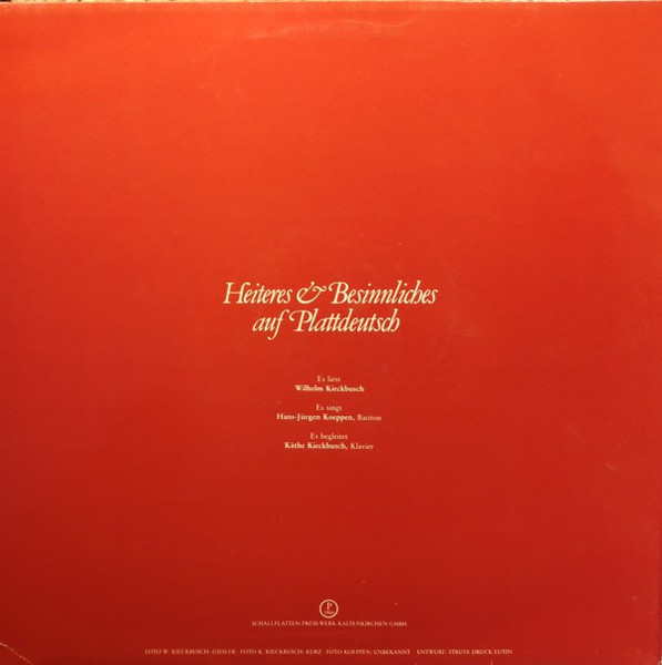 Heiteres und Besinnliches auf Plattdeutsch: Lieder im Volkston von Käthe Kieckbusch, nach Gedichten von Klaus Groth, Georg Hinrichs, Carl Budich und Hermann Claudius