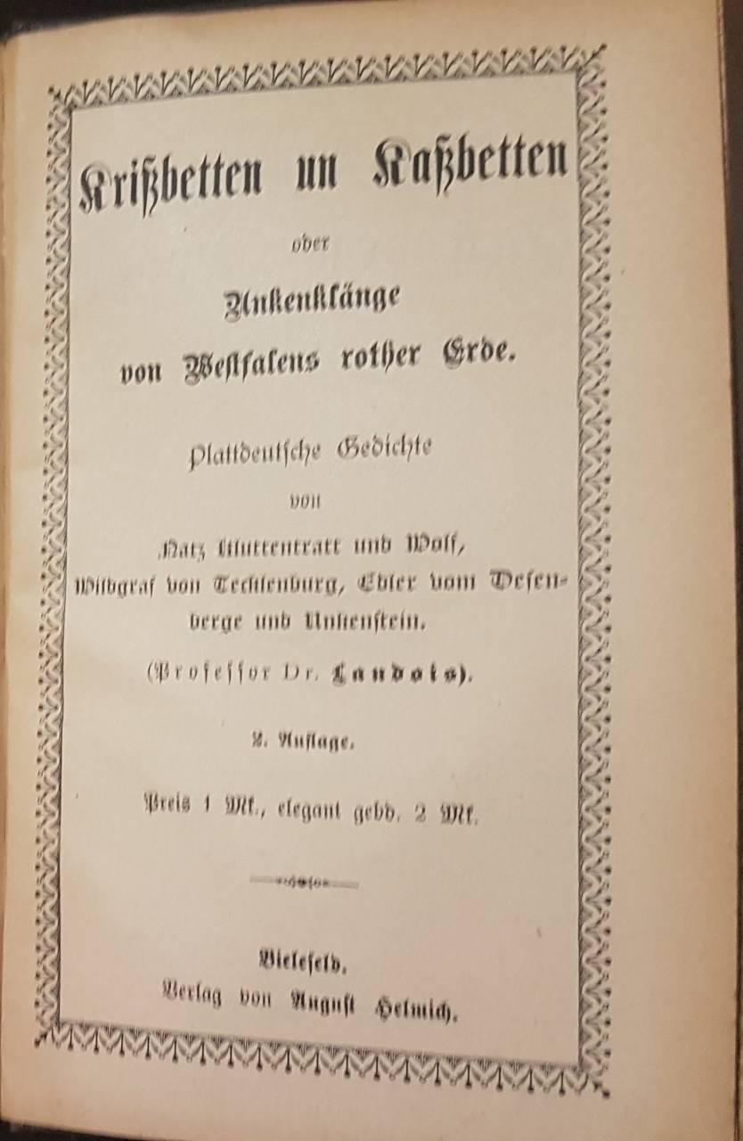 Krißbetten un Kaßbetten oder Unkenklänge von Westfalens rother Erde: Plattdeutsche Gedichte: von Natz Klutentratt und Wolf Wildgraf von Tecklenburg, Edler vom Desenberge und Klusenstein
