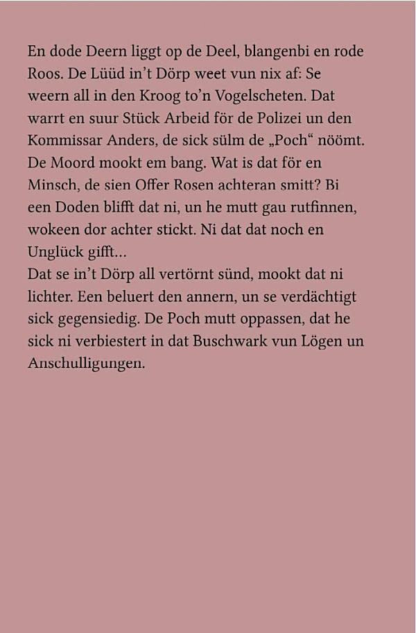 In den Fünfzigerjahren ist das Wirtschaftswunder auch auf dem Land angekommen. Die sich etwas leisten können, werden mit Neid und Misstrauen betrachtet, besonders in einem Dorf wie Dakeln, wo die Bauern seit Generationen untereinander verfeindet sind. Die alten Feste werden trotzdem gemeinsam gefeiert, und so sind sie alle beim Vogelschießen, als bei Bauer Hass eine Frau vom Heuboden stürzt. Alles spricht für einen Unfall - wenn da nicht die Rose wäre, die neben der Toten liegt. Die Kriminalpolizei ermittelt. Verdächtige gibt es viele, allen voran der Ehemann: Die Verstorbene nahm es nicht so genau mit der ehelichen Treue. War einer der Bauern ihr Liebhaber? Der Streit im Dorf macht es für die polizeilichen Ermittler nicht leichter. Kommissar Anders oder "der Poch", wie er sich nennt, weiß bald nicht mehr, wem er glauben soll. Es gibt keine Zeugen, alle waren im Krug und auf der Festwiese. Dann richtet sich der Verdacht auf den Mann von der Schießbude und seine Tochter. Man ist sich einig, solchen Leuten ist nicht zu trauen. Aber der Mörder macht wieder von sich reden, und weitere Rosen tauchen auf. Im Dorf geht die Angst um.